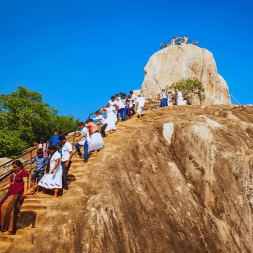 About 80 km from Yapahuwa, Mihintale is the birthplace of Buddhism in Sri Lanka. Visitors can climb ancient stairways, explore temples, and enjoy panoramic views of the surrounding plains.