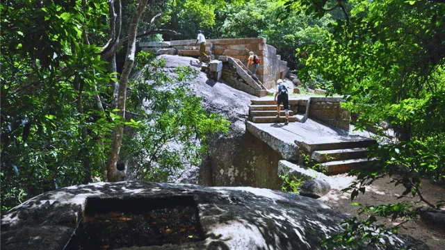 Reaching the top of Yapahuwa Rock Fortress Sri Lanka involves climbing a series of stone steps carved into the rock. The climb is moderate in difficulty and suitable for most visitors with basic fitness. Handrails are available in some sections, but wearing comfortable shoes is highly recommended, especially during hot or rainy weather.
