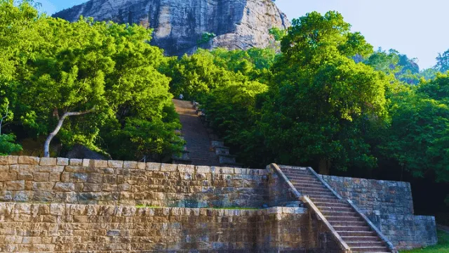 Massive stone walls, gates, and ramparts once surrounded Yapahuwa Rock Fortress Sri Lanka, providing strong protection against invasions. These structures highlight the strategic planning used to turn the rock into a nearly impenetrable stronghold.
